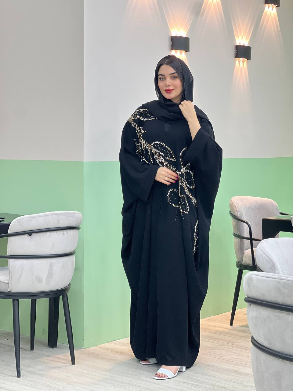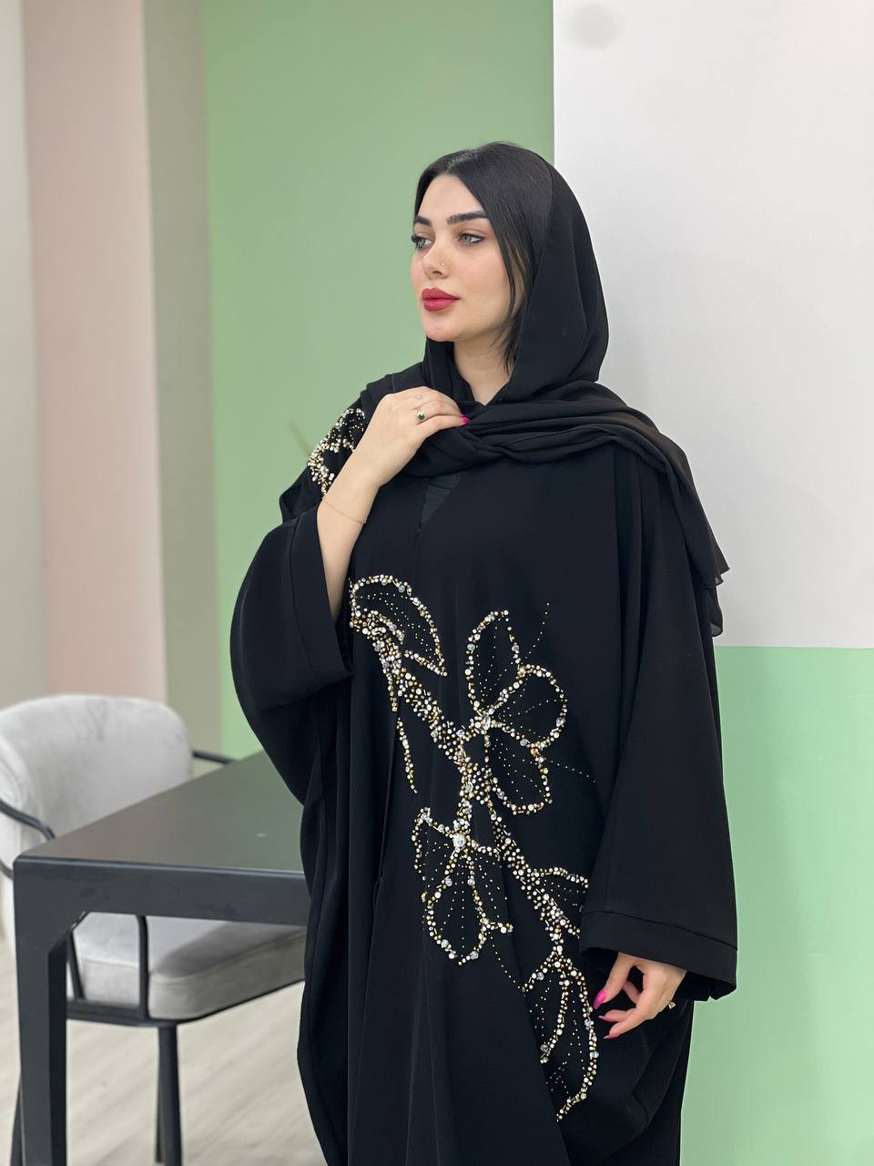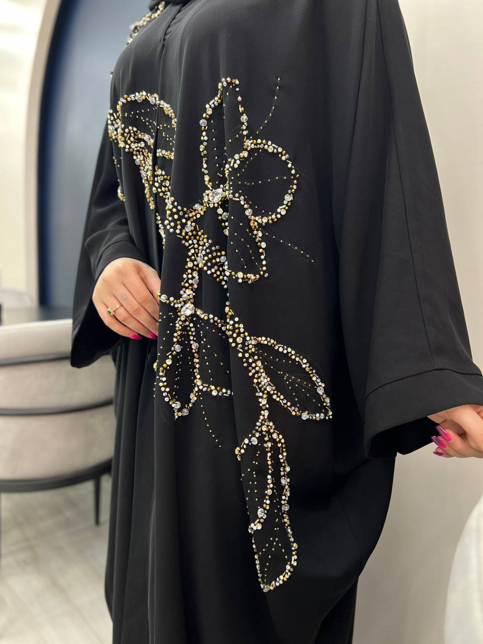 مانتو عبا اماراتی ملیله و پولک دوزی شده