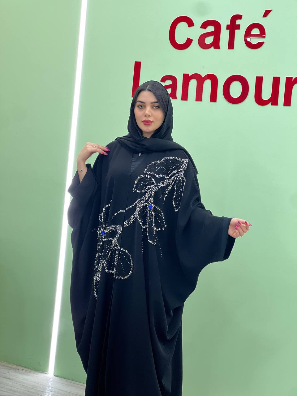 مانتو عبا اماراتی ملیله و پولک دوزی شده