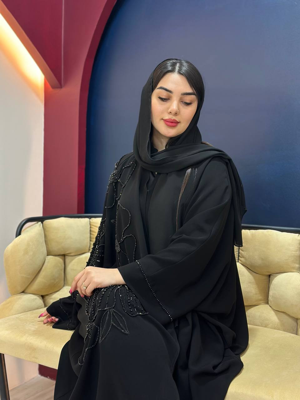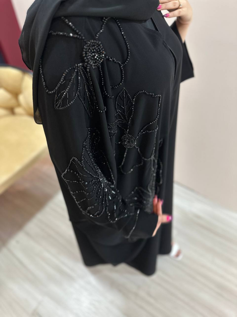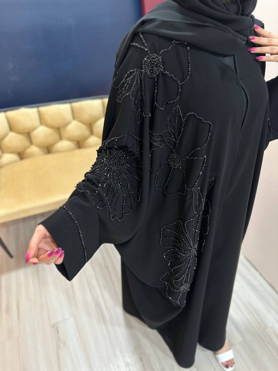 این عبا با طراحی خاص و جزئیات درخشان، انتخابی بینظیر برای استایلی فاخر و جذاب.