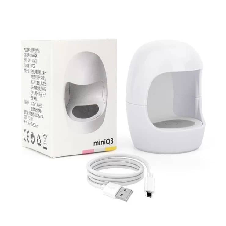 دستگاه لاک خشک کن مینی یو وی Q3 بسیار سبک و کوچک بوده و به راحتی قابل حمل اند و استفاده از آن بسیار آسان است این دستگاه دارای تایمر ۱ دقیقه ای بوده و مناسب برای خشک کردن لاک ژل هستند این دستگاه امواج ماوراء بنفش تولید کرده و در اکثر سالنها و حتی در منازل نیز استفاده میشود توان این دستگاه ۶ وات بوده و دارای ۳ عدد لامپ LED با کیفیت می باشد برق این دستگاه توسط یک کابل mini usb تامین شده که در داخل جعبه قرار گرفته است جالب اینکه بدانید این دستگاه با شارژهای موبایل هم نیز قابل استفاده اند .