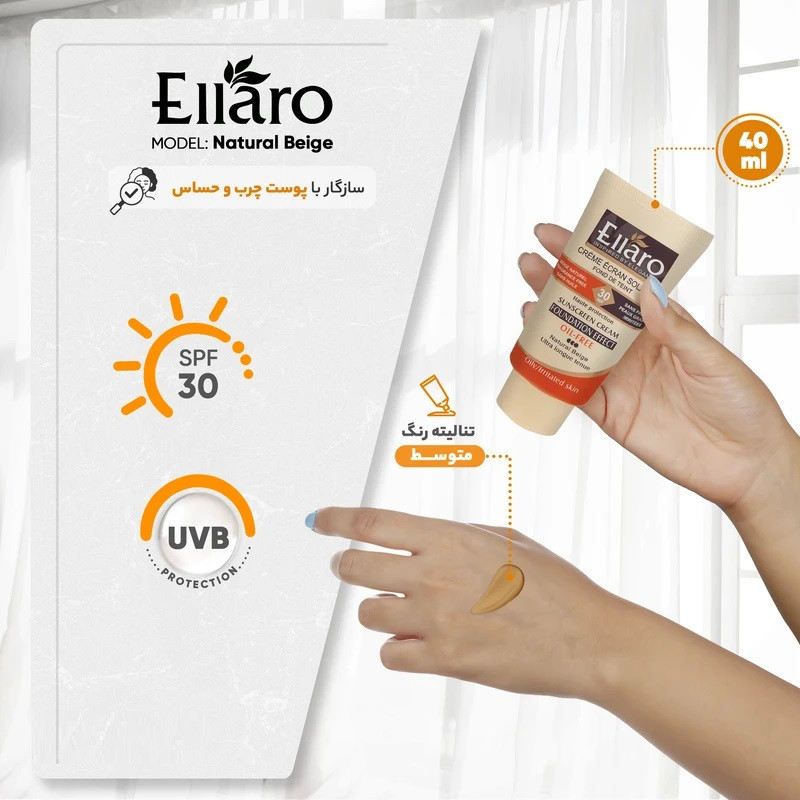 کرم ضد آفتاب رنگی الارو SPF 30 مدل Foundation Effect مناسب پوست های چرب و حساس حجم 40 میلی لیتر